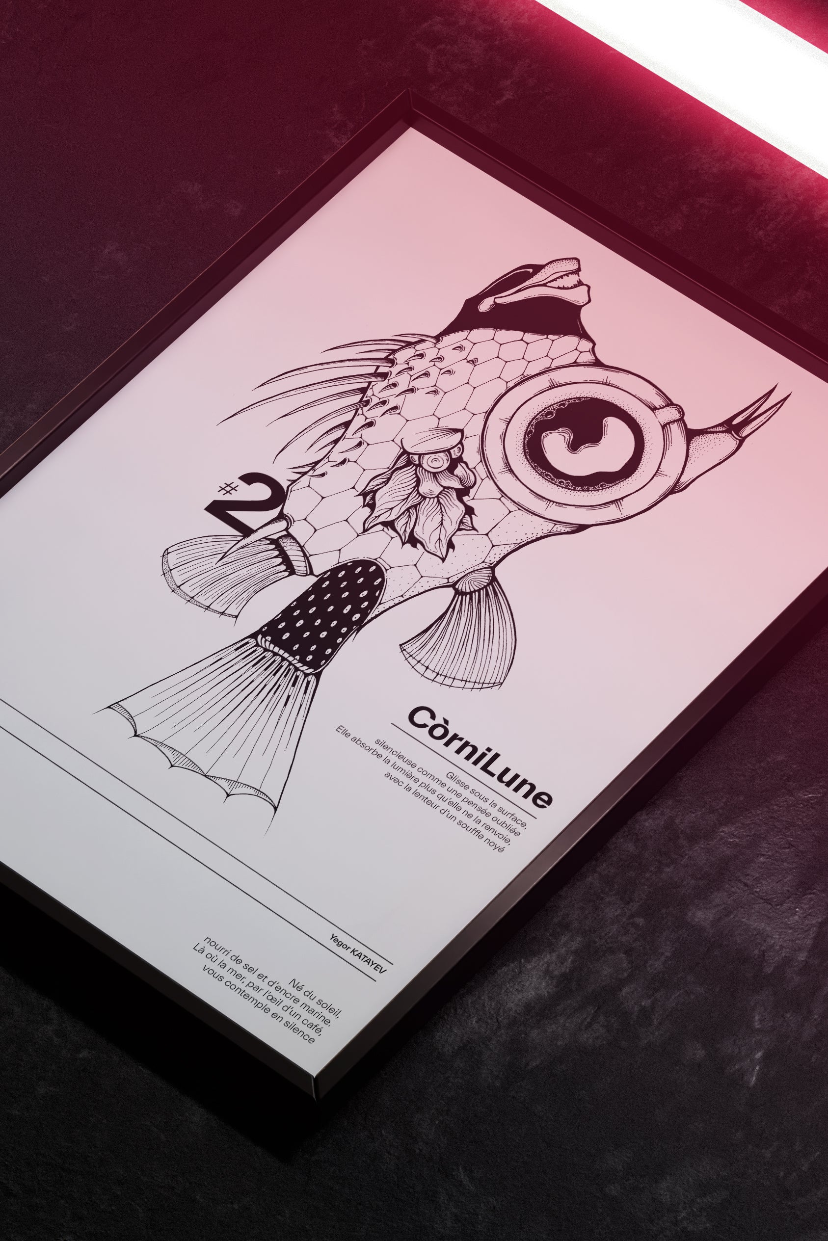 Bring a touch of surreal marine poetry into your space with CorniLune, an original artwork from the DuRibafe series.